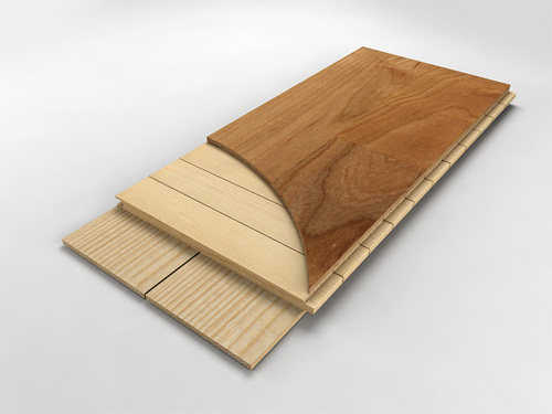 Волокна среднего слоя идут поперек волокон верхнего, а волокна нижнего слоя вновь поперек волокон предшествующего. При изменении влажности древесина изменяет размеры вдоль волокон значительно меньше, чем поперек. В этом и состоит вся изюминка изобретения: взаимно перпендикулярные слои сдерживают линейное расширение друг друга, что сводит к минимуму деформациювсего изделия в целом. Вот почему трехслойная паркетная доска деформируется под влиянием колебаний температурно-влажностного режима в три раза меньше, чем штучные планки или массивная доска.